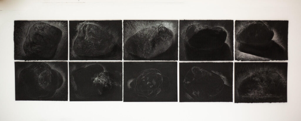 ‘Works explore returnings, universal wanderings through bodily presence, casts, traces and mark-making. Some works evoke a desire to incubate, to hide, and put on hold; whilst others explore the elements of sacred water, air, soil; and the stars. Conventional, excavated and eco-materials are used to explore ephemerality and the awareness and responsibility of ‘Passing Through’ as a privileged guest for a short while.’ Jane Fox.