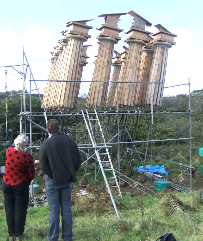 Saunders began thinking about the piece around the year 2000, as a monument to our ambitious yet precarious ingenuity, always at the mercy of the forces of nature. Over fifteen years of research, collaboration, testing and iteration followed before the structure finally found its home at Tremenheere Sculpture Gardens in 2015.