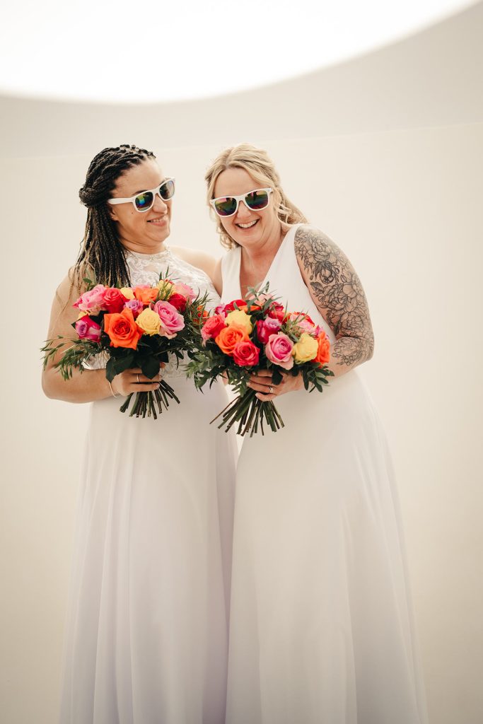 Emily and Sadie celebrated their elopement in the Garden Pagoda overlooking St Michael’s Mount, followed by photos in the James Turrell Skyspace and the Sculpture Gardens.