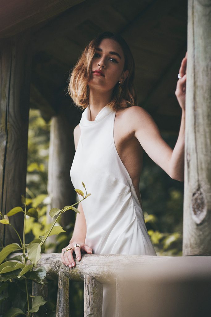 Photography: Liam Arthur. Styling & makeup: Suzi Winter using Merit. Hair: Lauren Adams Hair. Model: Meja Jurgelaityte. Stockists: Bliss Bridal Gowns, St Ives Bridal Boutique, The Lucky Sixpence & Victoria Louise.
